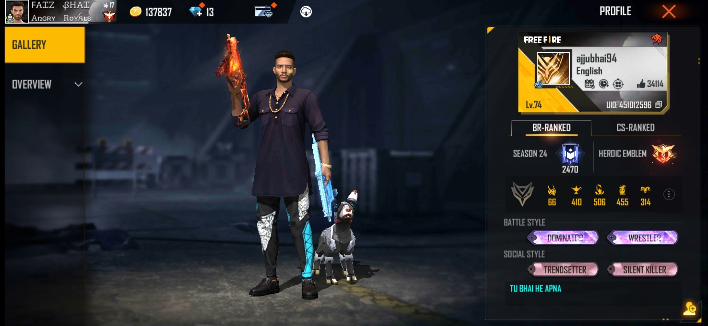 Indian free fire player ajjubhai (TOTAL GAMING) free fire I’d and states